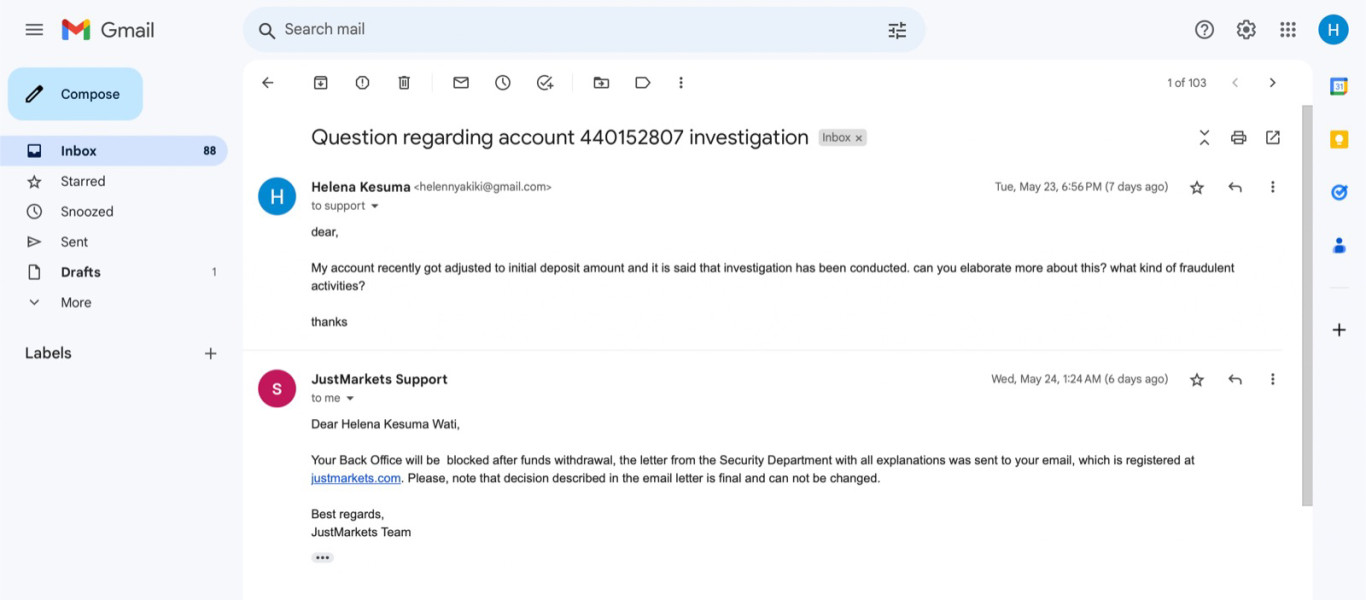 On may 23rd, justmarket took all my hard earned profit when the market is going my way and adjust my account back to my initial deposit. Soon after that, they send me an email stating that the reason for this very unprofessional behavior by them is that i was involved in fraudulent activity, while what i did was using expert advisor to trade and i havent withdraw a single cent from my profits. I highly recommend everyone to stay away from this broker, they dont want you to win