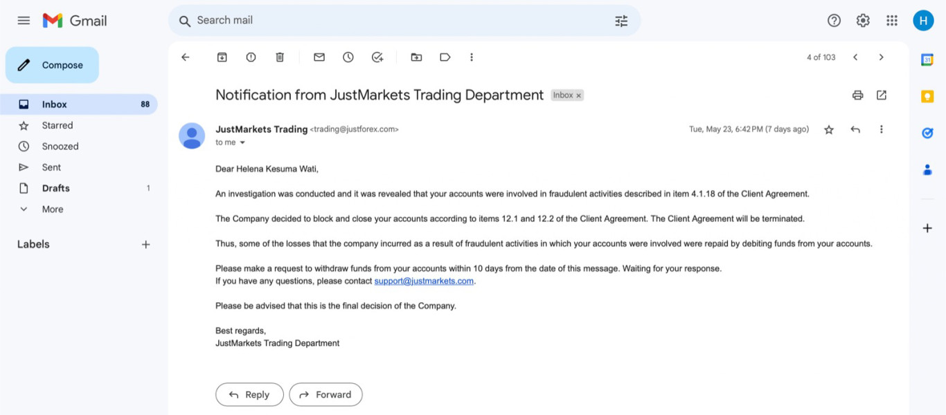 Justmarket mengambil keuntungan saya dan memblokir akun saya