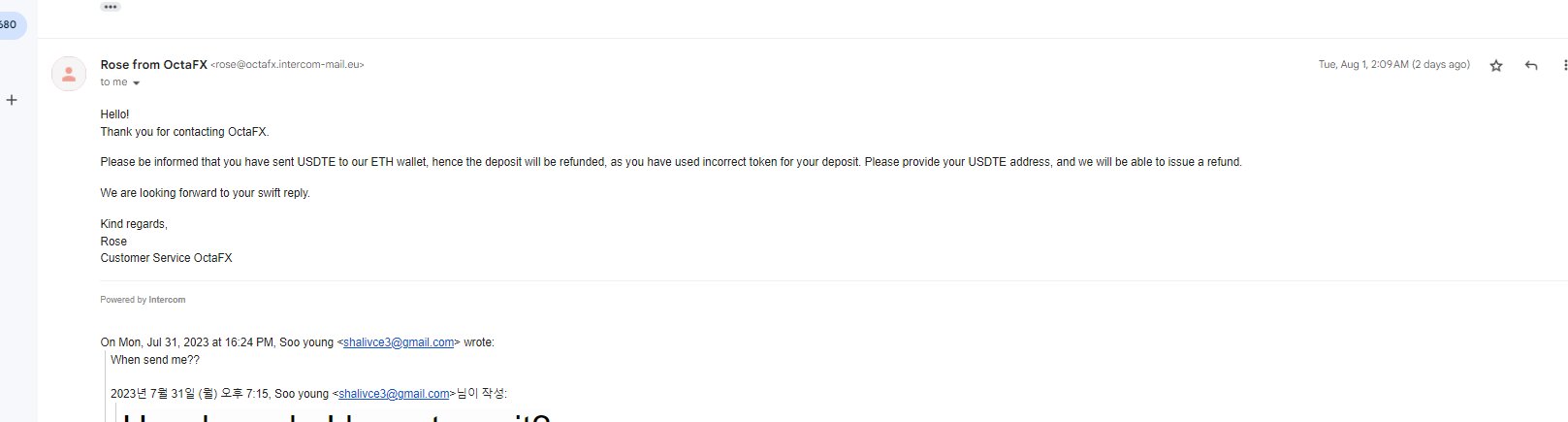 My name is jangsooyoung. The deposit caused by the payment problem has been delayed and this deposit has to be refunded to me from octafx. But they're delaying this refund and I've been having this unpleasantness for two weeks.I was expecting a quick refund due to their quick response but they are just asking me to wait.I'm not sure if they really refund my deposit.