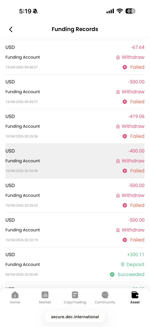 DEC adalah platform penipuan. Mereka memperlakukan Anda seperti raja saat Anda kehilangan uang—tetapi begitu Anda mendapat untung, mereka secara sewenang-wenang menandai transaksi Anda sebagai "pelanggaran\" dan membekukan penarikan.