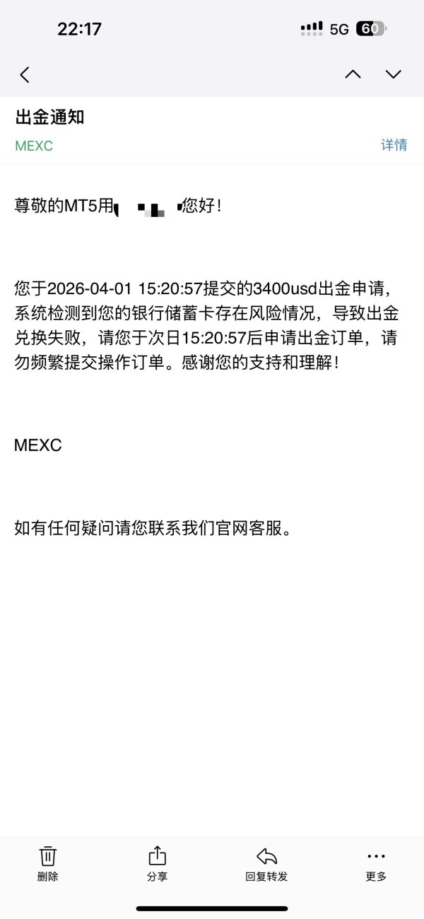 我已在外汇天眼发布了曝光,并主动联系平台客服明确表示:放弃利润,只要求退还入金本金7000美元。这是我能做出的最大让步。但平台依旧没有作出任何回应 至今已过去两周,平台客服没有任何回应。
