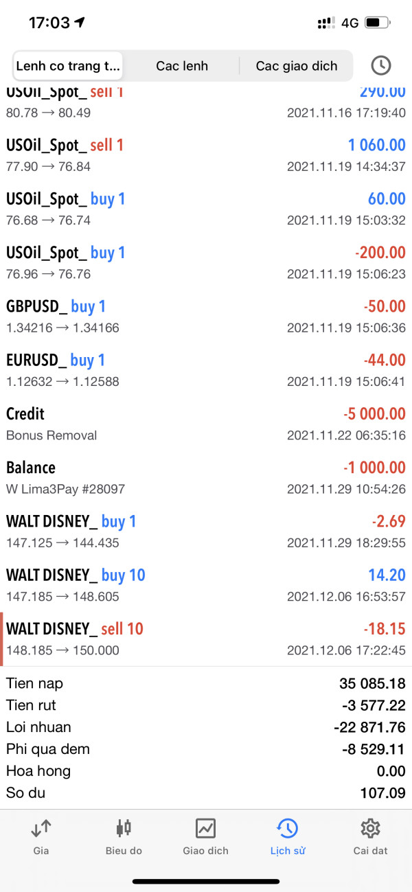Ngày 15/09/21 tôi nạp 10,000$ sau đó trade theo lệnh của IB.Tài khoản tôi bị âm họ yêu cầu tôi nộp thêm tiền để xử lý .Tôi nộp thêm 5,000$ tuy nhiên tài khoản vẫn âm và họ yêu cầu tôi nạp thêm 10,000$-20,000$ tuy nhiên tài khoản của tôi hồi được 5,000$ thì IB cho tôi 1 lệnh Nasgat spot làm âm của tôi 9,000$. và đến này 23/09/21 tài khoản của tôi bị stopout.Tôi gọi 1900252531 thì họ trả tôi 3,200$ .Xin hãy trả tôi tiền còn lại là 12.000$ .Tooi đang vay tiền tín dụng .IB cố tình đưa sai xu hướng