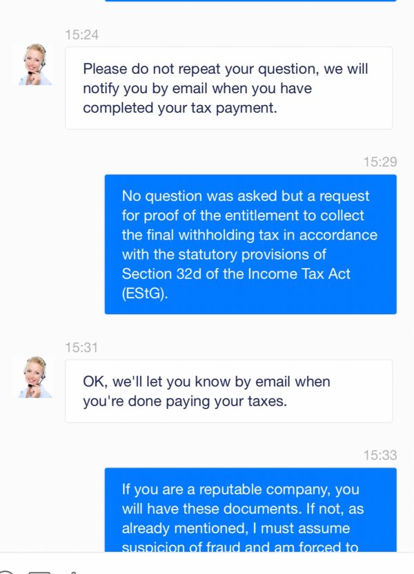 Ich gehe von einem Betrug aus und bitte um Aufnahme der Ermittlungen unter jeglichem rechtlichen Gesichtspunkt. Ich Bitte um Ihre Mithilfe.