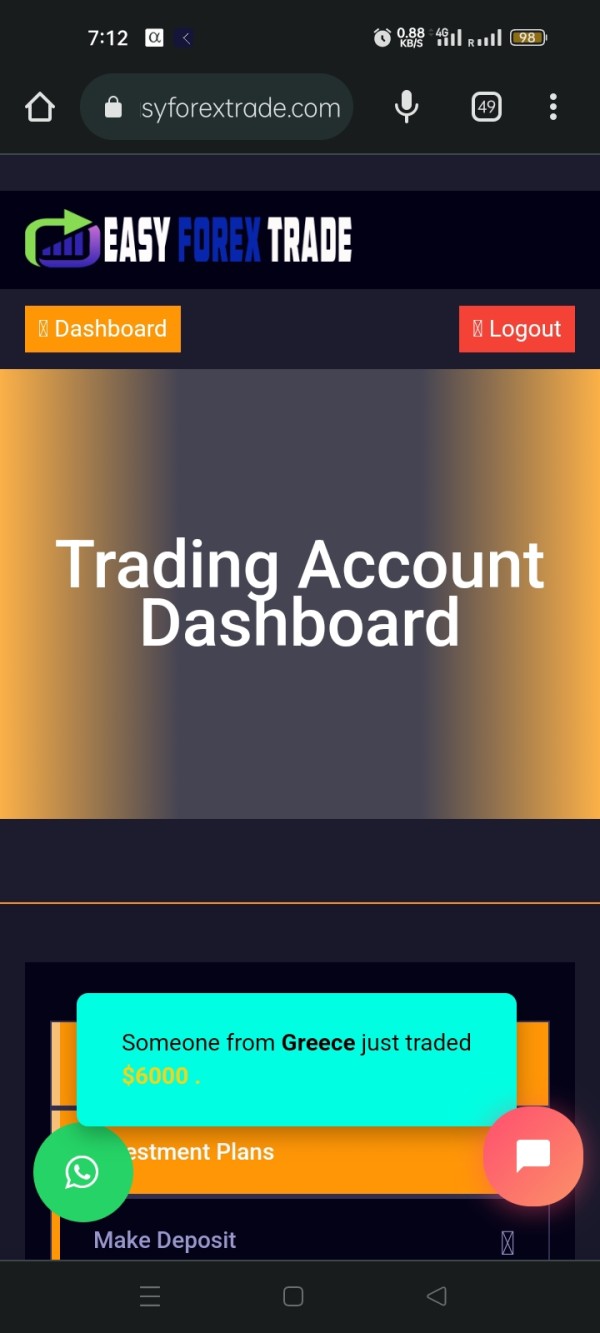 mr. jay hill chats with me every day and convinces me to deposit money on his platform and he says he will take care of growing my money and all I have to do is monitor my profit and that he convinces me because of the big profit and make a deposit I got 20k or $364 by gcash transaction and it hasn't been 24 hours yet, my easyfortrade account has a profit right away and it says I need to pay a transaction fee first before I can withdraw my profit. and here some evidence below..