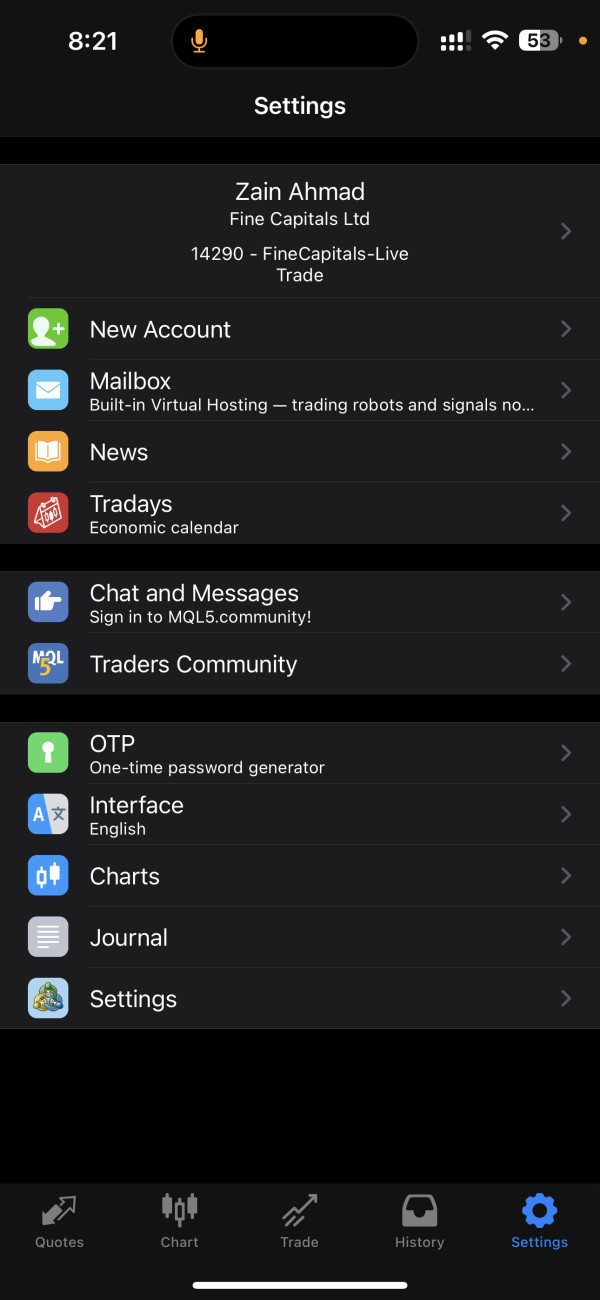 Hello My name is Zain Ahmad My Fine Capital Id MT4 id is 14290