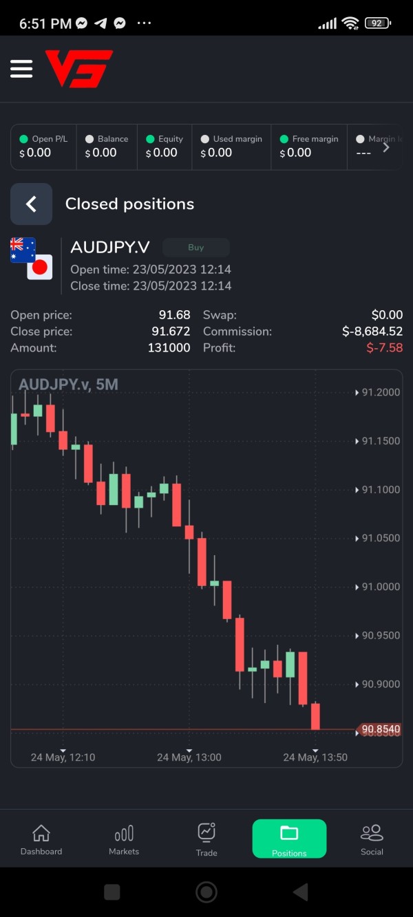 We traded yesterday May 23,2023 in AUDJPY in a matter of second my capital turn to -8684usd from 871usd. please help us retrieve our fund.