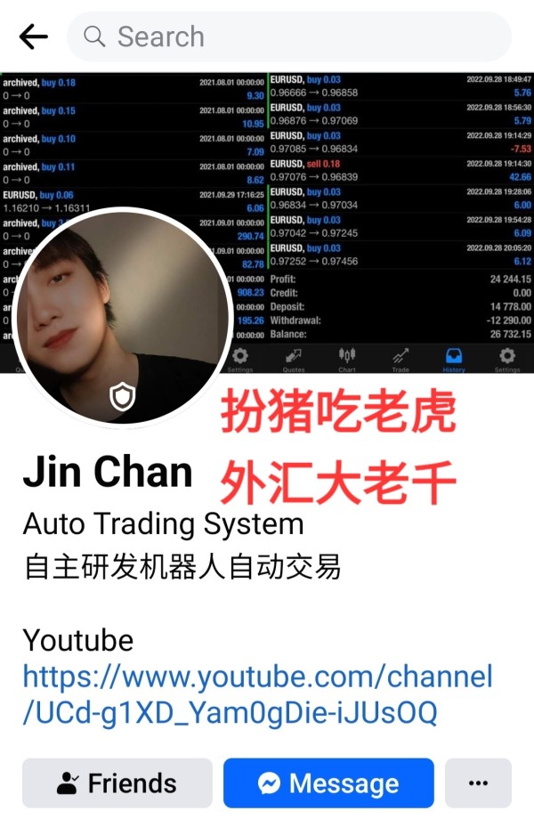 已经很小心了,但是老千手段厉害。 他应该是JJPTR的党羽,因为曾经看过他分享JJPTR录制的外汇交易的youtube视频。回想诈骗手法和JJPTR蛮相似。交易了一段时间骗取信任然后导致交易亏损宣称大趋势的原因而不是他的原因。本次诈骗主角和JJPTR李宗圣同样是槟城人,感觉JJPTR让他的党羽代为出动诈骗,JJPTR以另一种方式死灰复燃!!