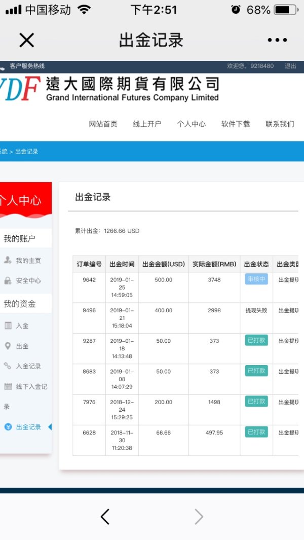 远大从2019年1月21日开始就无法出入金!该公司就是黑平台!请大家远离远大国际期货这个黑平台!