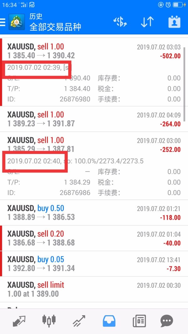 帐号:800624我在交易时遇到两个问题导致我亏损近6000美金。 1)07/02 CHINA300中华300 昆仑交易平台 早上09:30开盘时平台无任何反映,且购买的另外一个现货黄金价格一直在跳动而CHINA300的产品无任何反应,导致错失最佳离场时间,导致损失惨重 2)XAUUSD现货黄金,7/2买空一手,但系统自动弹出2手(两个1手)导致我一瞬间爆仓,损失1018美金(订单号:26876980 6876986 26877705 而且此种情况出现6月到7月接连出现6-7次导致直接损失10000多美金 另外还有挂单,滑点的问题导致亏损最少有10000美金 要求昆仑国际退换账号800624/602787两个账号本金20173美金