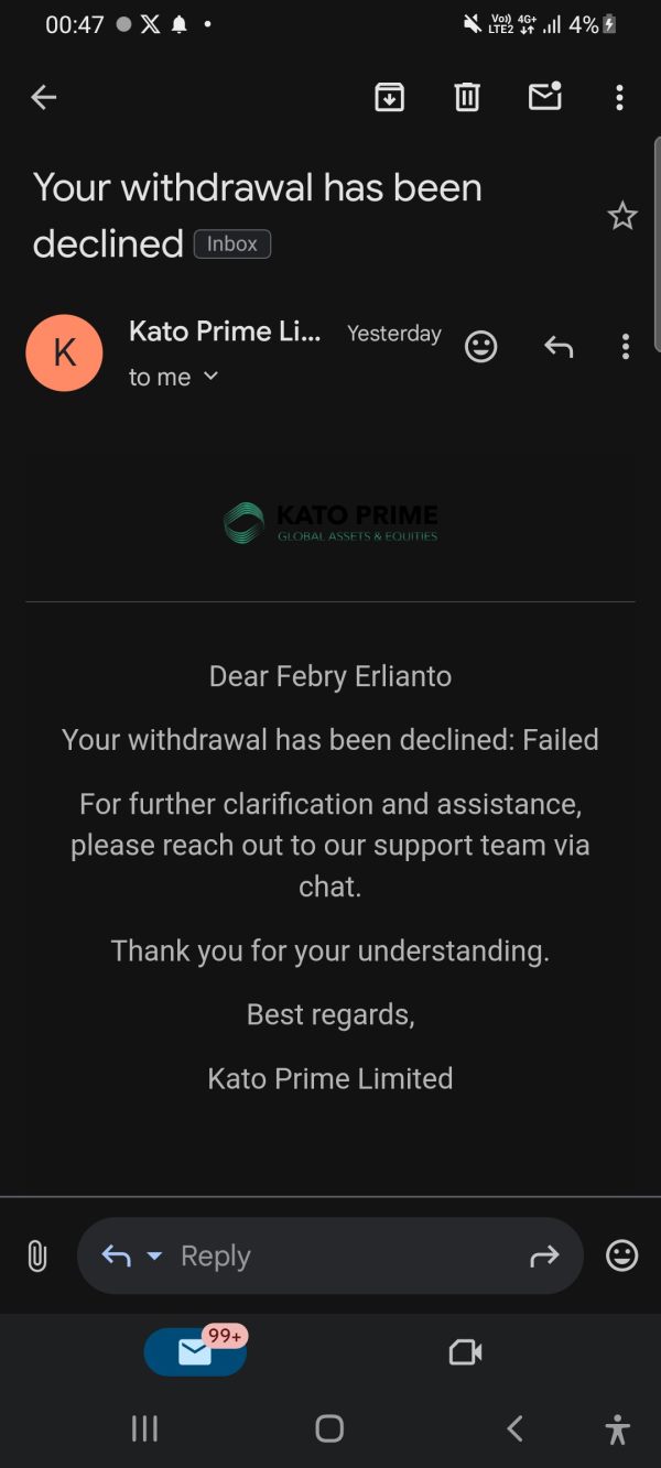When I was about to withdraw my funds, Kato suspended my bonus account due to the suspicion of multiple accounts. I only use Wi-Fi, and other family members also use the same Wi-Fi and trade on Katoprime. When I sought clarification, Kato only explained that my account was suspected of being a multiple account, not definitively so. Furthermore, upon reviewing the terms and conditions, there is no clause prohibiting the use of a shared network (Wi-Fi). If there is indeed a rule against using the same Wi-Fi, it should have been clearly stated to prevent any party from being disadvantaged by this lack of clarity.