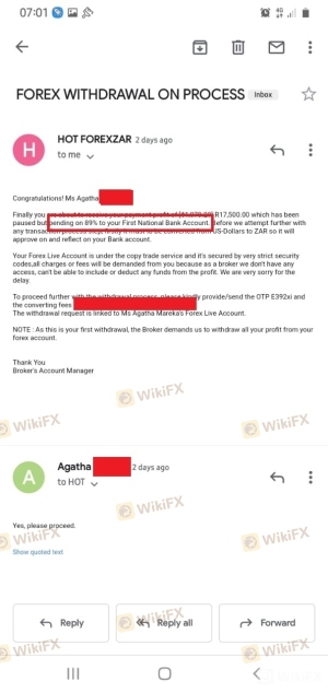 Qualcuno sull'app social mi ha invitato a investire. Non sono riuscito a prelevare e l'e-mail mi ha detto che era in sospeso. Per favore aiuto. È una piattaforma di frode?