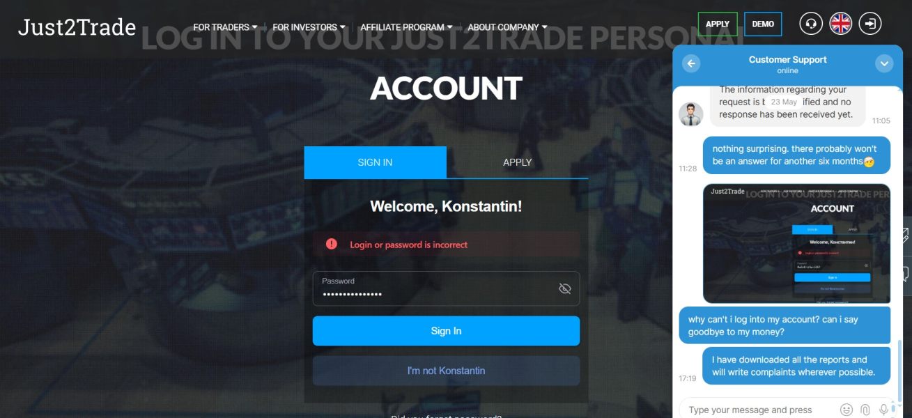 該当ユーザーはJust2Tradeがトレーダーであることが証明されていません