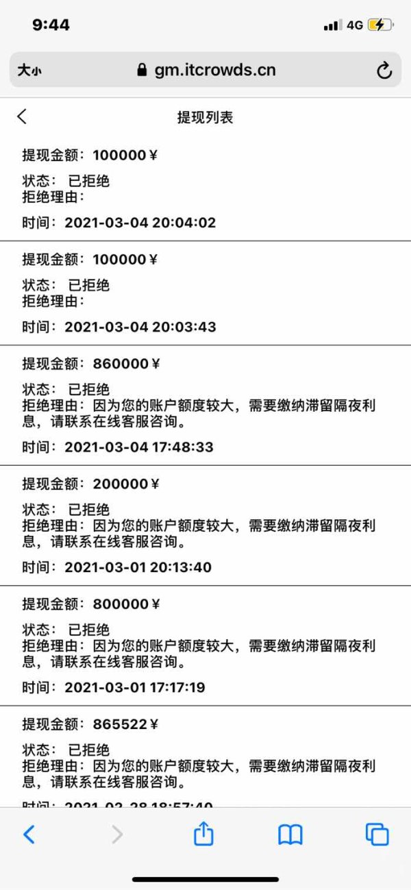 黑平台,根本就无法出金,总是用各种理由让我充值,害的我人财两空。最后还把我的资金都冻结了。请大家多多注意。严厉打击这种黑平台!!