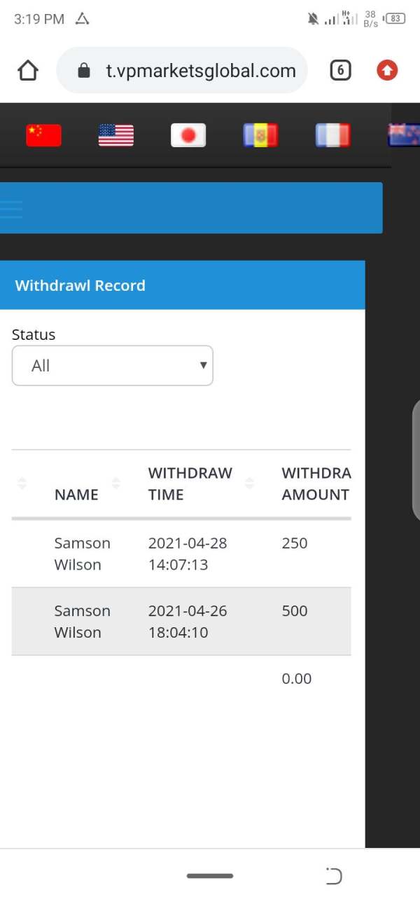 i requested for $250 from my deposited fund and I've been debited but I've not seen my money I've contacted the customer care service but they are not responding ive been scammed VP market is a scam