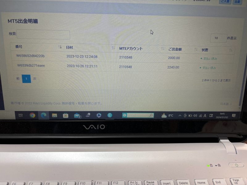 出金出来ません。