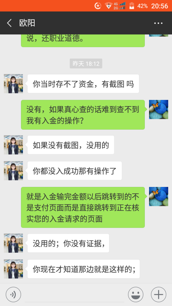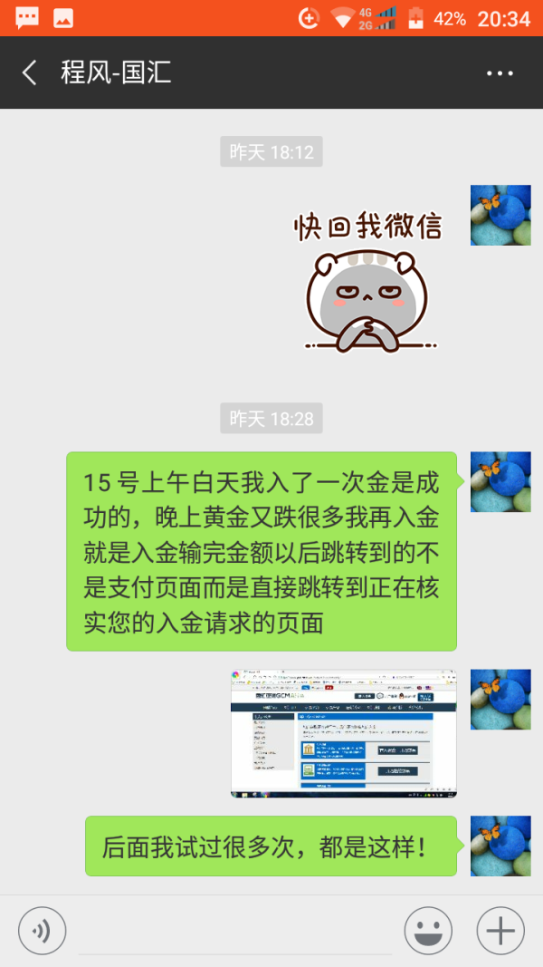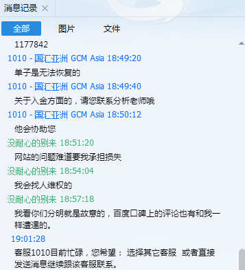 我在国汇亚洲的单子因为网站无法入金爆仓了,2018.08.15那天晚上我收到追加保证金提醒后从21:00到第二天凌晨3点多一直在尝试入金。不是网站打不开就是无法入金,经理也联系不了。结果眼睁睁看着爆仓!!! 15号白天我入了一次金是成功的,晚上黄金又跌很多我又收到了追加保证金提醒,于是就打开他们往站再次入金,奇怪的是在我输完入金金额以后跳转到的不是支付页面而是直接跳转到正在核实您的入金的页面。后面尝试很多次依旧这样直到爆仓!后面联系维护经理人家跟本不理你,连系网站客服ta他们就下线。分明就是故意的!曾在国汇工作过的一明经理向我透露国汇亚洲就是这样的!还惊讶我怎么现在才知道!!! 到百度口碑上搜了下国汇亚洲,负面信息还真不少,也有和我一样遭遇的投资者。 各位一定要远离这样的骗子平台呀,还有资金在这个平台的要尽快脱身!希望天眼平台及广大投资者帮我讨回公道,让此类平台绝迹于世!