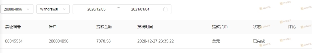 私の取引口座:200004096。彼らは12月27日に私の引き出し申請を承認しました。合計$ 7,978.58です。しかし、私はちょうど1,400ドル以上を受け取りました。私は彼らがしたことに対してとても言葉がありません。