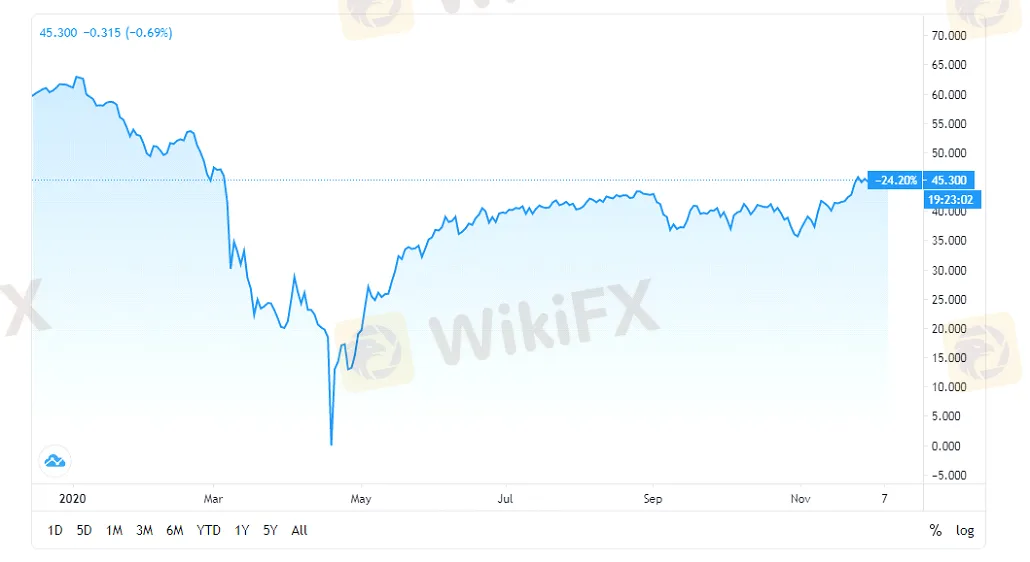 概要:WTI原油は2日間連続で下落し、7日には0.78%の下落で取引終了、46.0を下回ると記録しました。 原油価格は不透明な市場の影響を受け、短期的には価格上昇の鈍化がさけられないと予想されています。