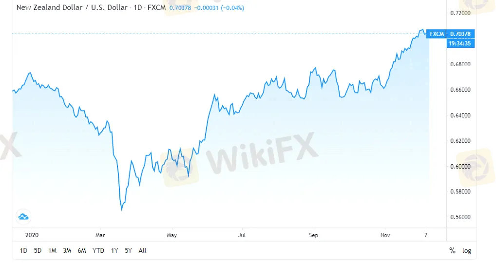NZD / USDは、米ドル安により11月以来5週間連続で増加を記録しています。さらに、新しいワクチンの開発により、世界的な経済回復に対する市場の期待が高まり、ニュージーランドドルにも大きな支援を提供しました。