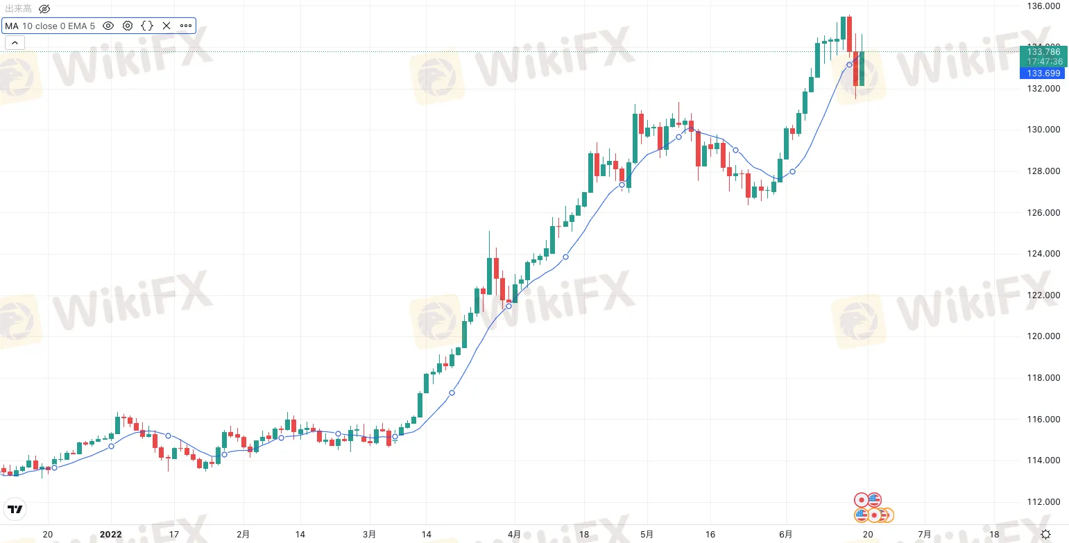 日銀の政策金利据え置き発表を受け、クロス円は全般的に上昇。米FOMC以降下落していた米ドル円は、132.291から発表直後に134.617をタッチしました。米ドル円は日足10EMAで下値を支えられる形で本日反発上昇しているため、このまま調整が終了とみなされるのか、注視したいところです。しかしながら、4時間足では75EMAを割り込んでいるため、方向感を絞り込まずに静観しましょう。