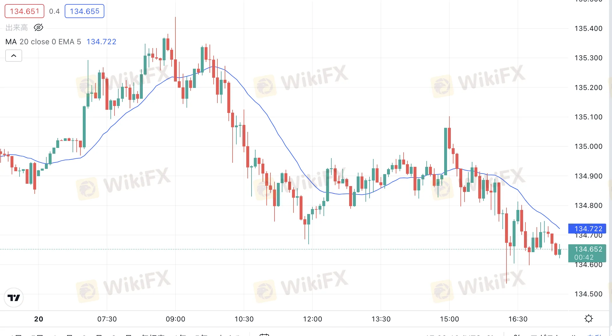本日のアジア時間15時過ぎからクロス円は全般的に下落傾向となり、米ドル円は本日高値の135.426から134.518まで90pipsほど下落しています。本日は米国が奴隷解放記念日のため祝日となり、株式市場が休場のため、米国時間にかけてのボラティリティの低下に注意が必要です。
