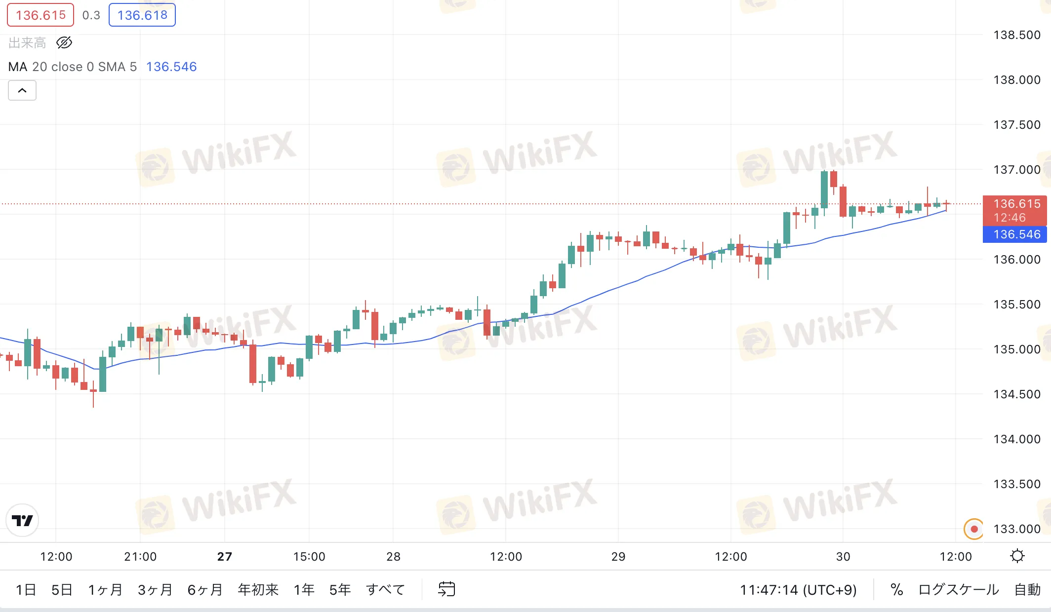 指標発表を受け、反落していたクロス円が再び上昇基調となりつつあります。昨日の米国時間で24年振りの137円台をタッチした米ドル円は、一時136.335まで反落しました。しかしながら、時間足20MAに下値を支えられ徐々に回復。本日の指標発表と同時に再び円が弱含む展開となっています。