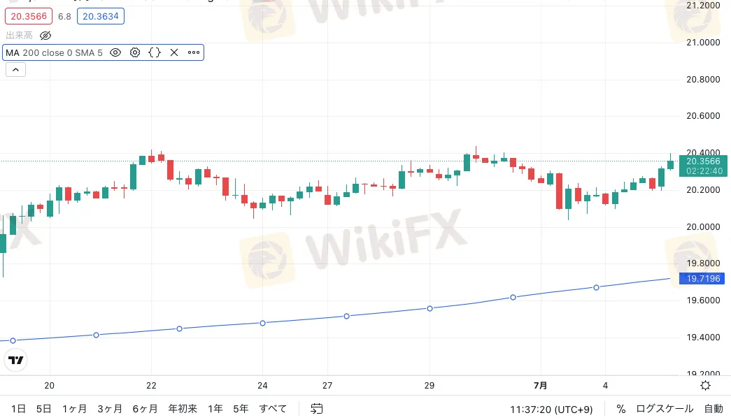 人民元円は、本日のアジア時間で堅調に推移しており、上昇トレンドが発生しています。現在の価格は20.382付近で、上昇継続を試みています。テクニカル的には、人民元円は時間足200SMAラインである20.230がサポートとして意識され反発が入りました。直近高値の20.436に届くのか、注意深く見守りたいところです。