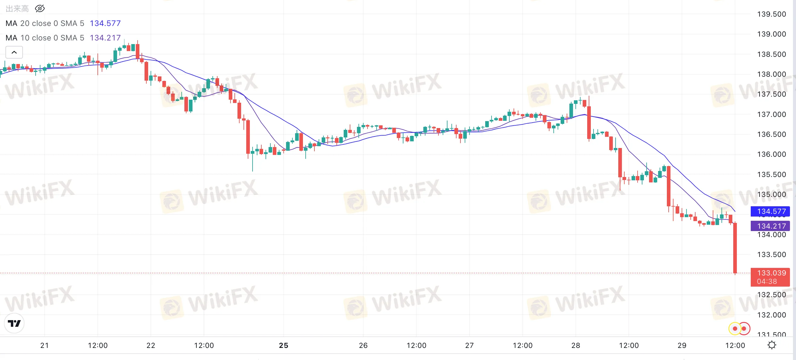 昨日、円買い基調がアジア時間から米国時間終盤まで継続し、米ドル円は2.4円の下落となりました。米・FOMC直前につけた直近高値の137.434からは、3.2円の下落となりました。FOMC直後からの下落は、時間足20MAに上値を抑えられる形で継続しています。