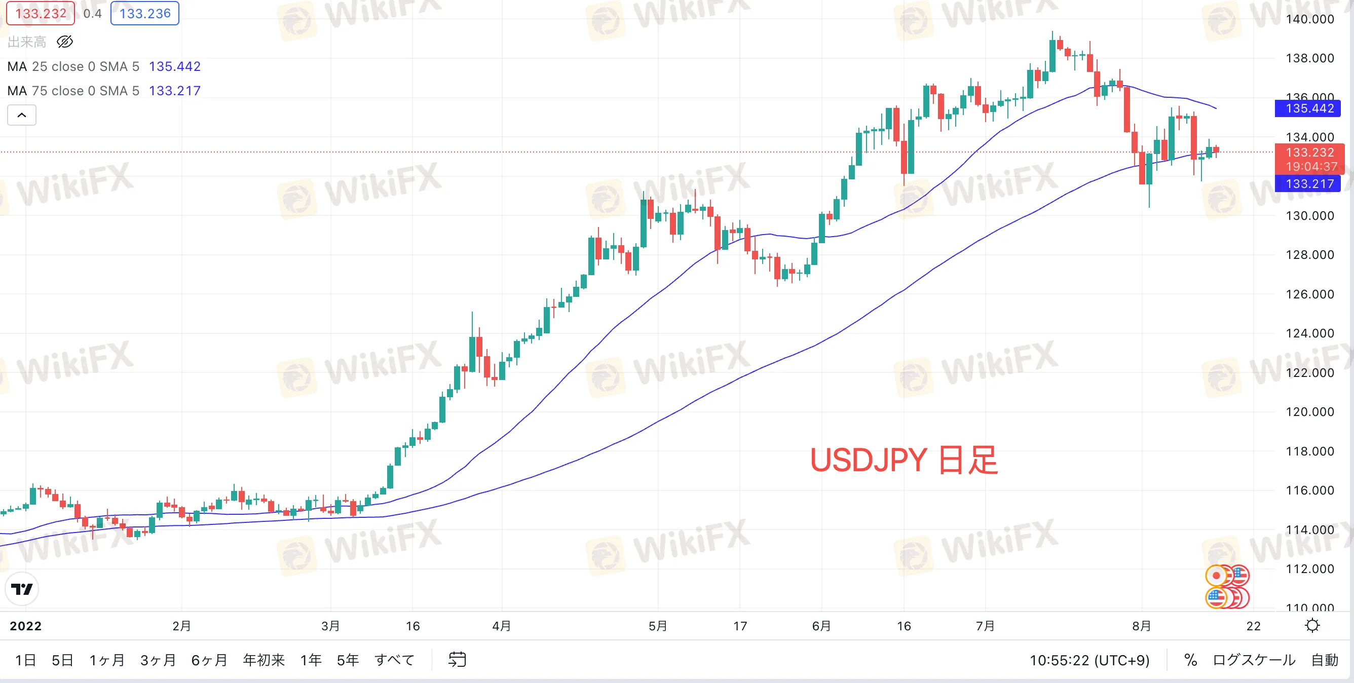 週明けの為替市場は、ギャップなくスタートしました。米ドル円は先週末に133.874まで反発しましたが、本日のアジア時間では失速しており、現在は132.781付近で下値を試す値動きとなっています。