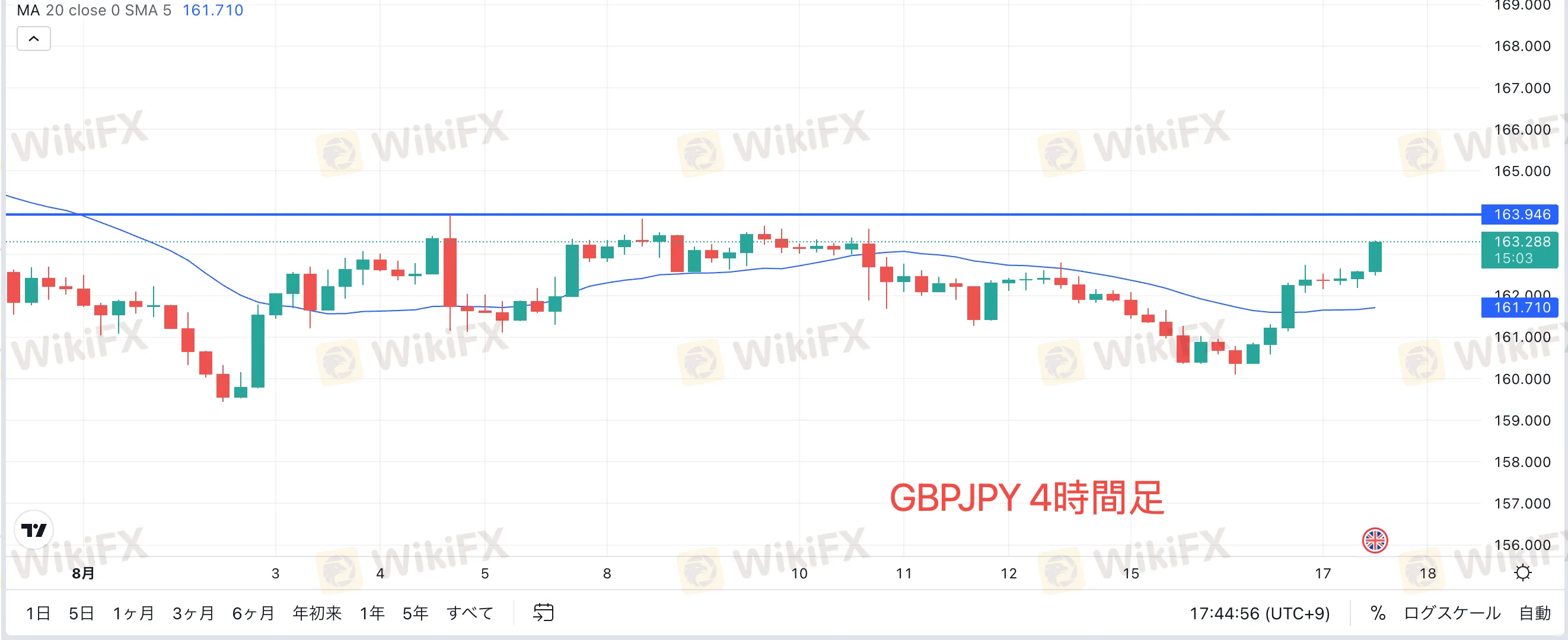 CPIの発表を受け、ポンドが対円で急伸しました。ポンド円は162.579から162.949まで40pipsほど上昇。本日のアジア時間で総じて上昇基調となっています。ポンド円は4時間足でダブルボトムになりつつあるため、直近高値の163.946を上抜けるのか注目したいところです。