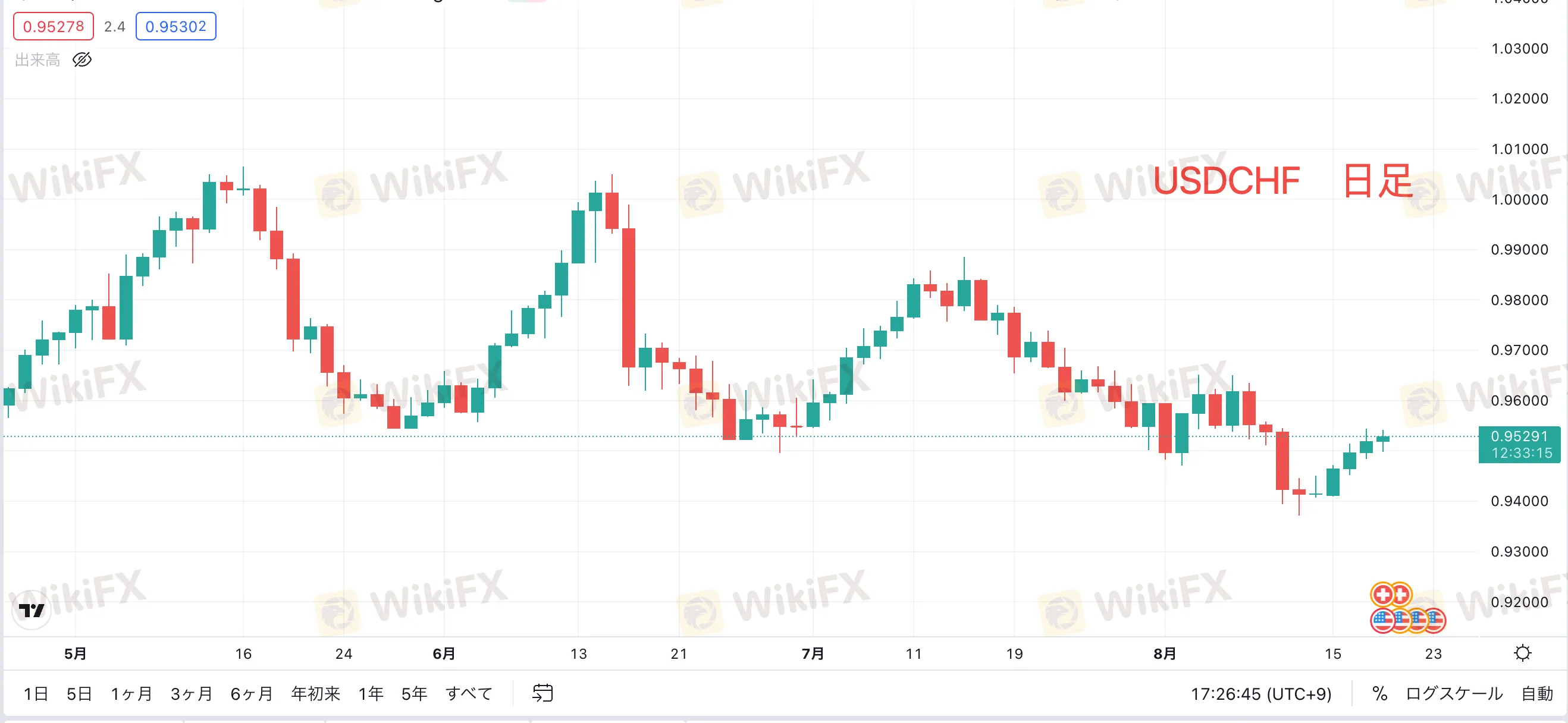 貿易統計の発表後、スイスフランは下落幅を拡大しました。米ドル/ スイスフランは0.9497から0.9540まで上昇。昨日高値に並んでいます。米ドル/ フランは日足ベースで非常に特徴的なチャートパターンとなっており、三尊天井を形成後、ネックラインを下抜け下伸していました。