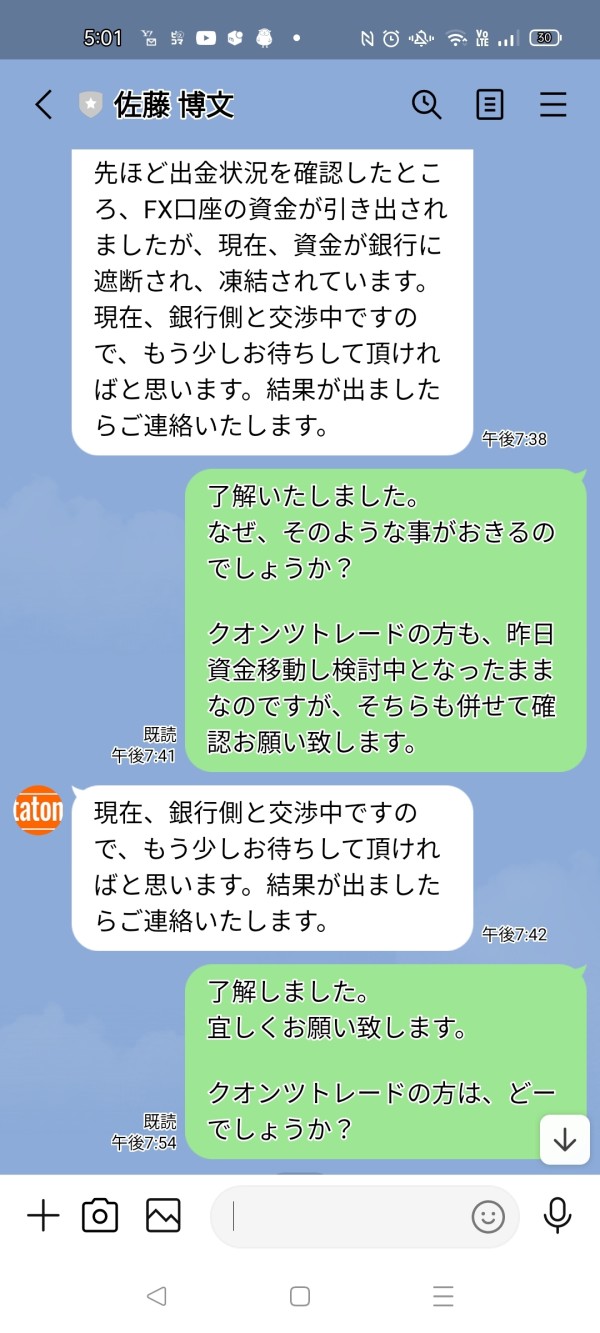 2022年12月19日に口座開設 MT5を使用しFXを開始 数回入金、出金を実施いたして、滞りなく出金できたので大きな金額を入金し、利益がでましたので、2月20日出金しようとしたら、出金が出来ないと連絡がありました。出金には保証金200万欲しいと連絡がありました。 ご対応の方宜しくお願い致します。