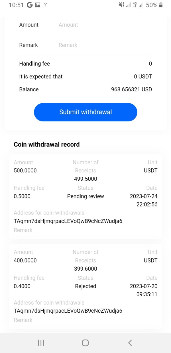 USDC를 사용하여 친구로부터 무역 및 대출을 받습니다. 그들은 세금으로 잔액의 20%를 지불하고 계정 관리를 위해 20% 더 지불하도록 요청한 다음 인출할 수 있도록 보안을 위해 내 잔액의 50%를 인출하도록 요청하고 귀하의 계정에 입금되었다고 말했지만 그들은 580 $라고 하지 않았습니다. 이 모든 증거가 있습니다. 이제 내 돈은 내 계정에 있지만 인출할 수 없습니다. 내 재산을 되찾기 위해 무엇을 할 수 있습니까? 이제 검토 대기 중인 출금 요청이 있습니다. 어떻게 받을 수 있는지 도와주실 수 있나요? 내 질문에 대답하십시오