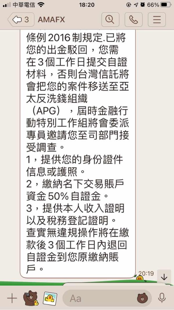 經交友軟體自稱白富美女孩,先跟妳談感情,博取信任,誘導投資入金,第一次入金,想跑出入金流程,結果就卡住了,人消失了,出不了金,還要繳自證金50%,涉嫌洗錢,還需要接受調查。