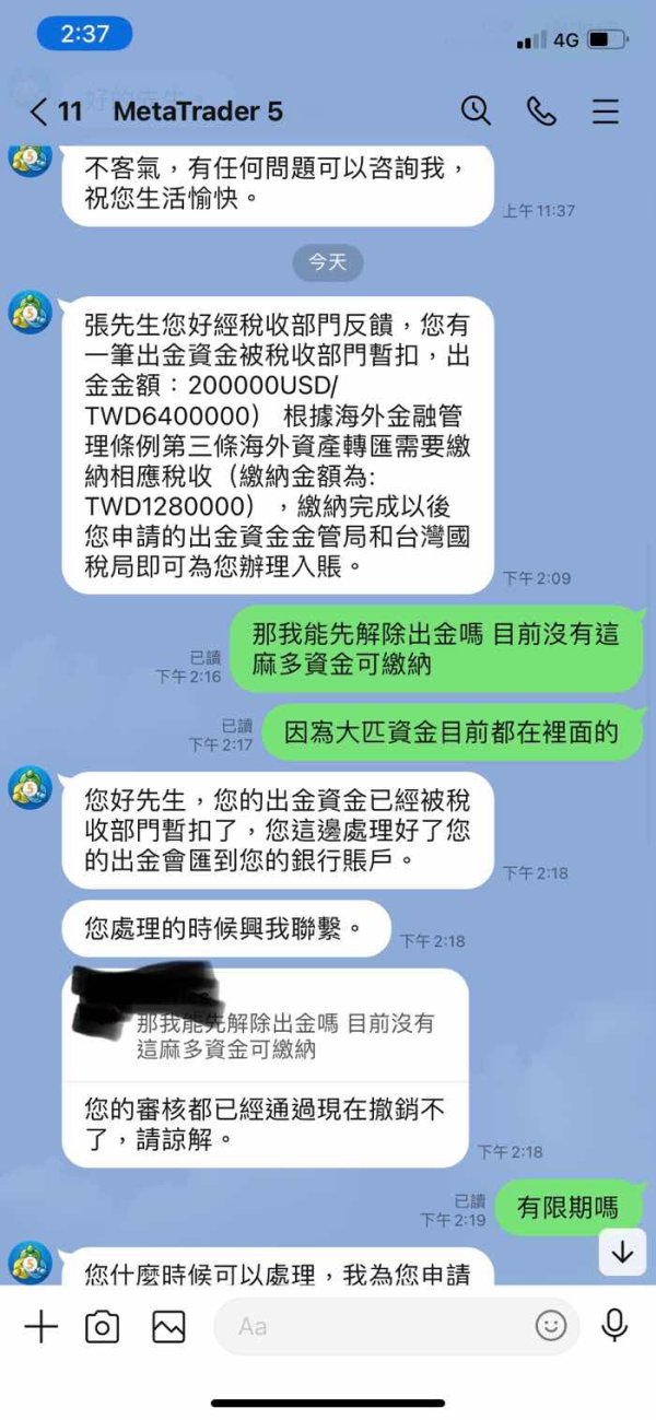 無法出金,要求大額稅金,要求滯納金
