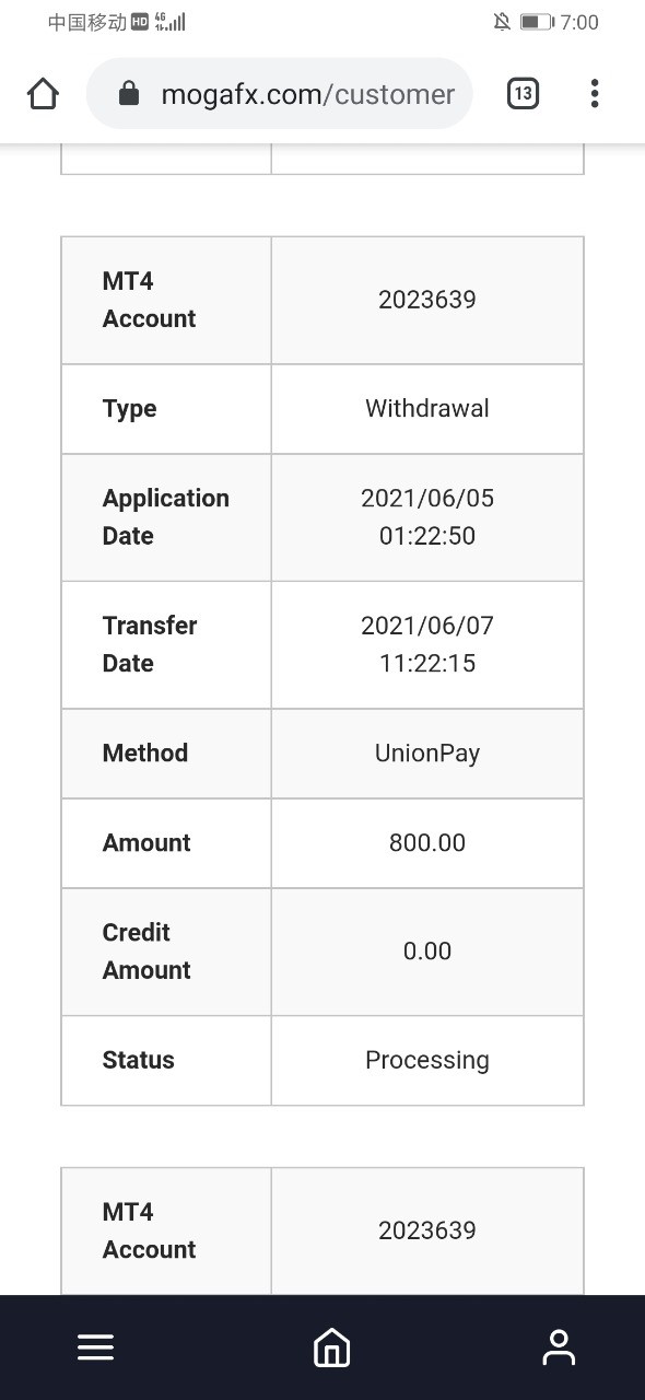 Mogafx withdraws 800$ but does not arrive at the account, and promises to arrive at the account within 48 hours with the official website.