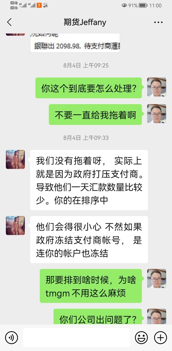 两千多美金出金了四个月,中间各种理由,换了几个人联系,让我删除原来的投诉,先给我出金一千美金,说好剩下的十一月底给出金,到现在又没消息了!就是黑平台,一直拖着客户的资金,大家千万别上当,入金的时候说的各种好都为把你拉进去!