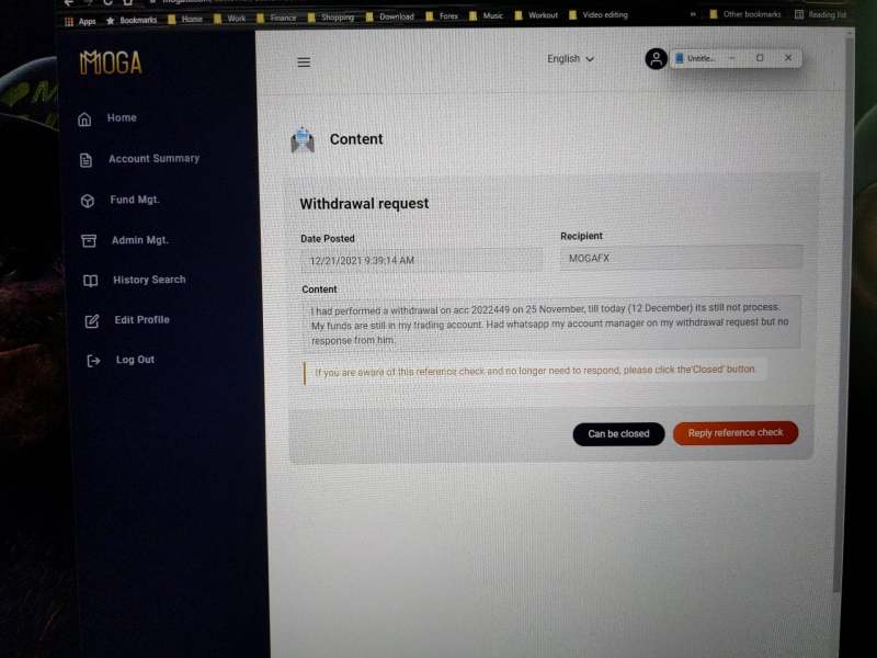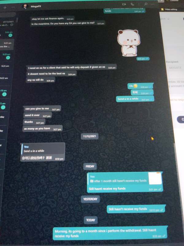 Had been trading for mogafx for almost a year now. From the very first day, I need to wait for at least 2 weeks before I gotten my fund. but now it's getting longer and longer (1 month). furthermore totally no response from account manager anymore.