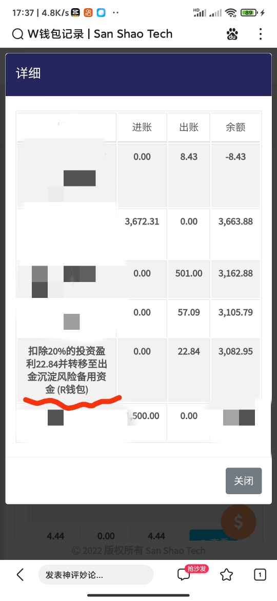 无法出金还弄个什么出金风险备用金,现在是该启动这钱包的时侯了,结果打脸,纯粹欺诈