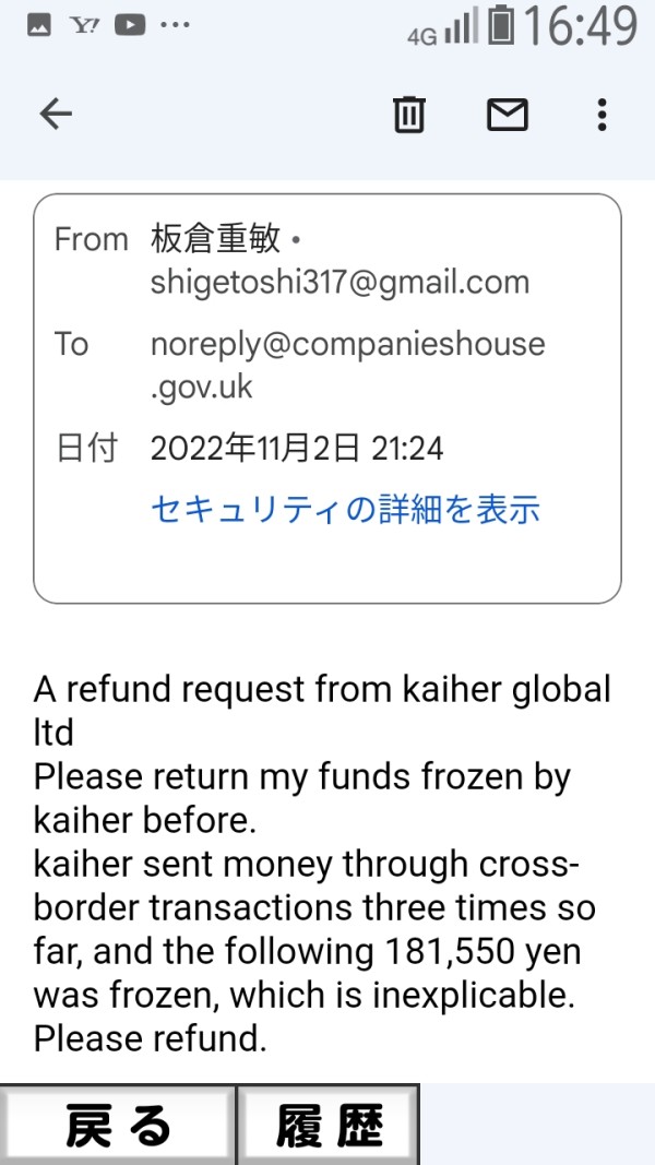 kaiher global ltdには、4回資金凍結された私の資金の返金を依頼して、メール送信したが、反応はなかった。今の時代は正規のプラットフォームが外貨に投資しても、お金を稼ぐのが、難しい。ましてや、悪意のあるプラットフォームでは、確定した絶対的な証拠がなければ、返金は難しい。