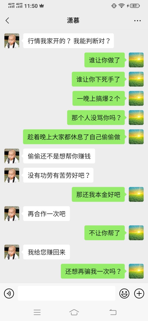 浦华证券黑心代理以高级外汇分析师身份行骗,引诱客户入金后,私自操作客户账户,恶意爆仓,他代理的账号都给搞爆仓,然后拉黑,联系不上。做为浦华证券明知道该代理违反操作规程,还包庇代理,推卸责任,一直不回应,这样不负责任的平台不要合作,一入浦华深似海,会让你很失望,要求归还本金。