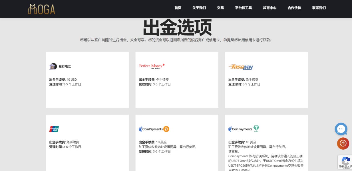 MOGAFX인출을 허용하지 않으며 자금을 인출할 수 없습니다.