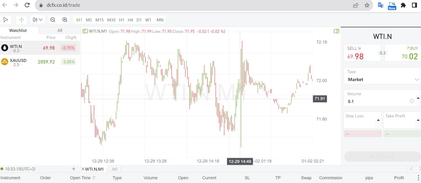 WTI/석유 시장에서는 불공평하고 해롭습니다. 2023년 12월 29일 14시 49분에 시장은 71.95에서 멈췄습니다. 다른 곳의 시장은 71.21의 가격으로 04:00에 마감되었지만. 보낸 이메일에도 불구하고 DCFX 그리고 응용 프로그램에서 wti가 12월 30일 02:45 마감에 거래를 종료할 것이라고 발표되었습니다. 2024년 1월 2일 01:00에 시장이 갑자기 열렸고 가격이 잠시 급등하여 71.68에서 시작하여 72.16으로 빠르게 상승했습니다.