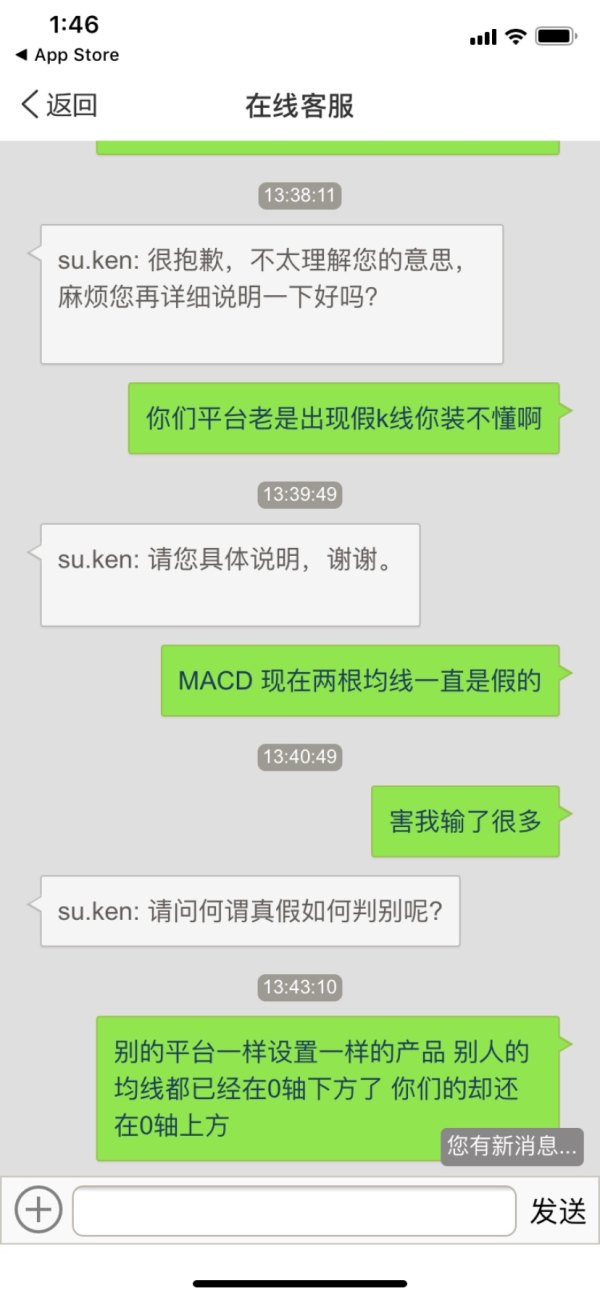 最近两个星期又亏了很多人 怎么操作都不对了 结果今天发现了金道坑人的地方 以前用MACD均线操作十次九次是准的 现在十次十次都不对 今天被我发现了 金道居然出假均线 害我亏死了这几天。去客服客服不知道是出什么原因要我的帐户