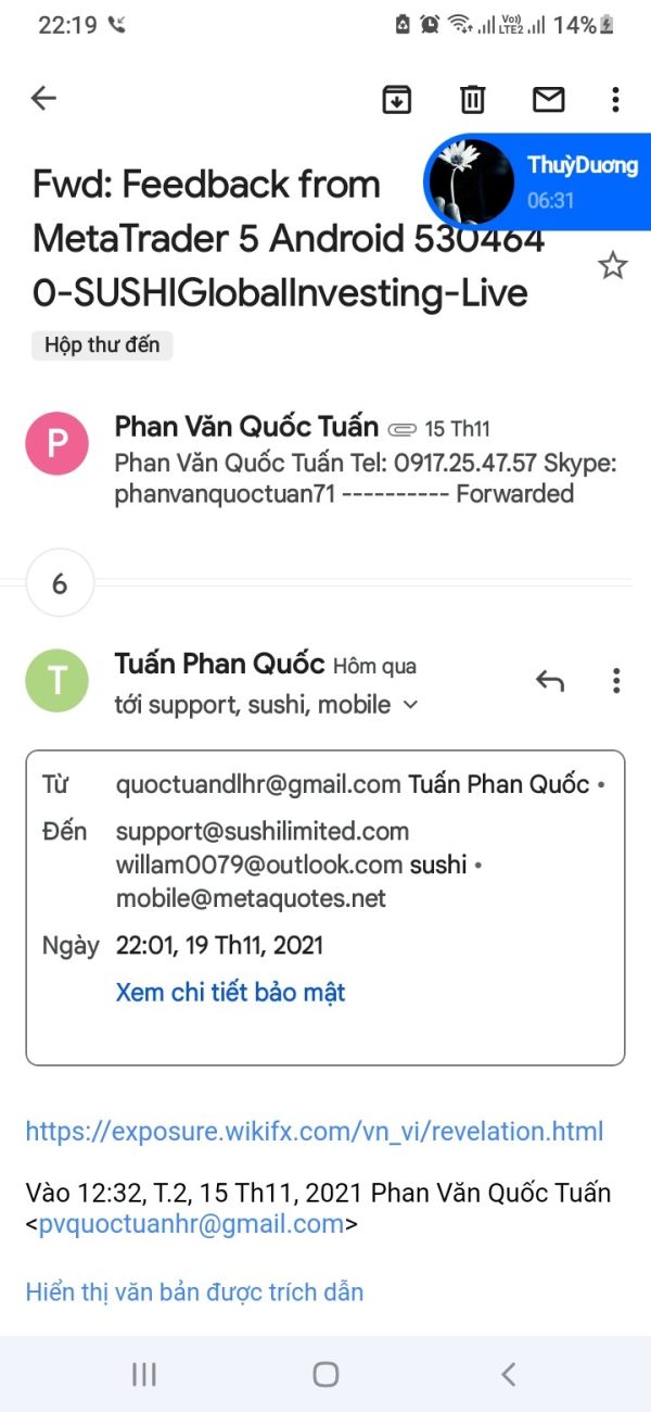 Tôi bị sàn SuShi không cho rút tiền và xóa tài khoản. Tôi được mời vào sàn USDC thì chính là những người của Sàn SuShi tư vấn mở tài khoản ở sàn USDC. (file đính kèm)