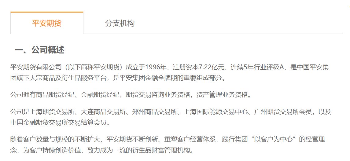 Ping An Futures is supervised by proper regulatory bodies and has been around for over twenty years. The service level is really professional, and it's a reliable platform.