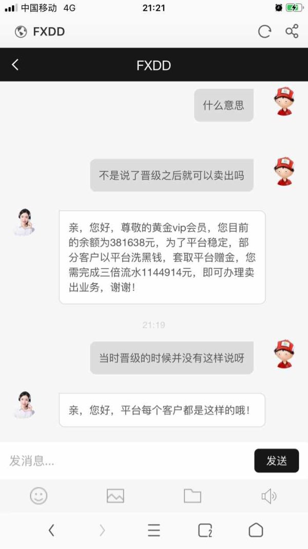 FXDD骗子平台,一开始说晋级黄金VIP会员成功就能办理出金业务,结果晋级完成之后又说要完成三倍流水或者缴纳保证金完成一倍流水才能办理出金,晋级之前根本没有说这些要求,简直就是欺诈!