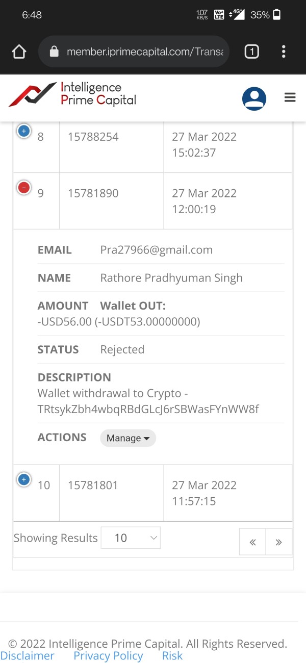 withdrawal rejected