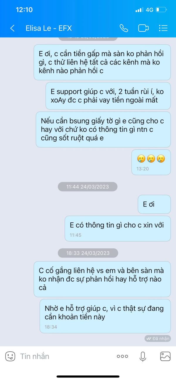 EFX giam tiền và không phản hồi khách hàng