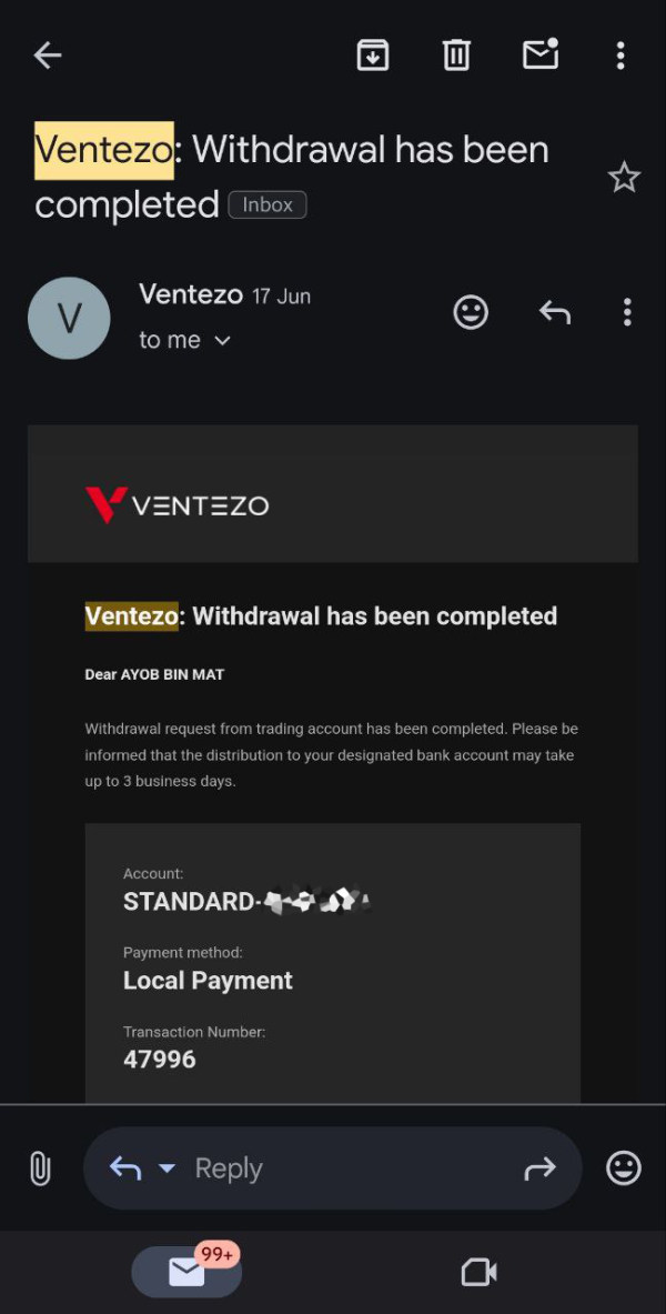 So far, since day 1 until now, I have had no issues with this broker, with good support from leaders and managers. Deposits and withdrawals have never been an issue. It's a reliable broker. I am still growing my network with this reliable broker. Thumbs up for Ventezo.